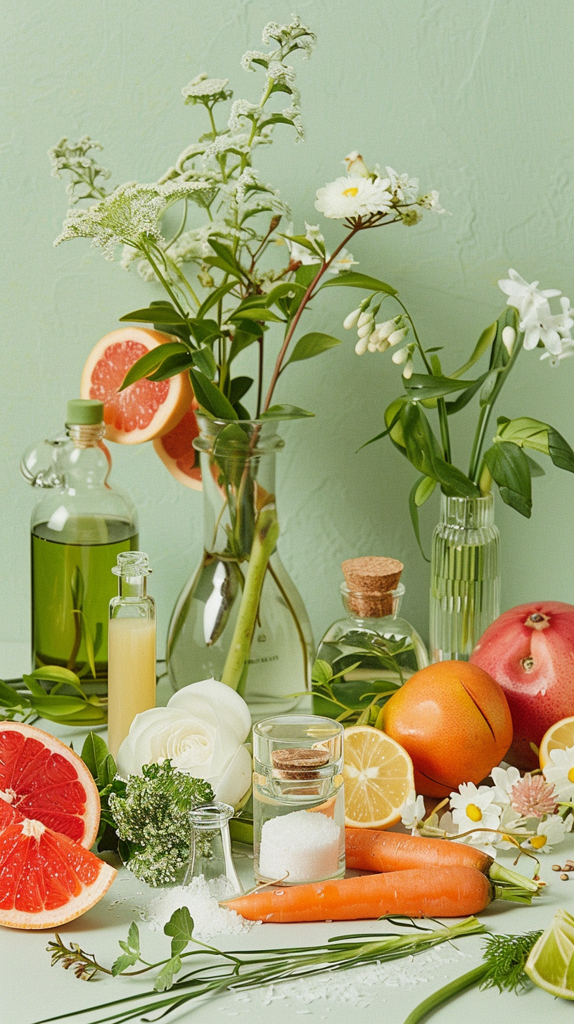 - Top: Grapefruit, Mango, Carrot, Tomato.